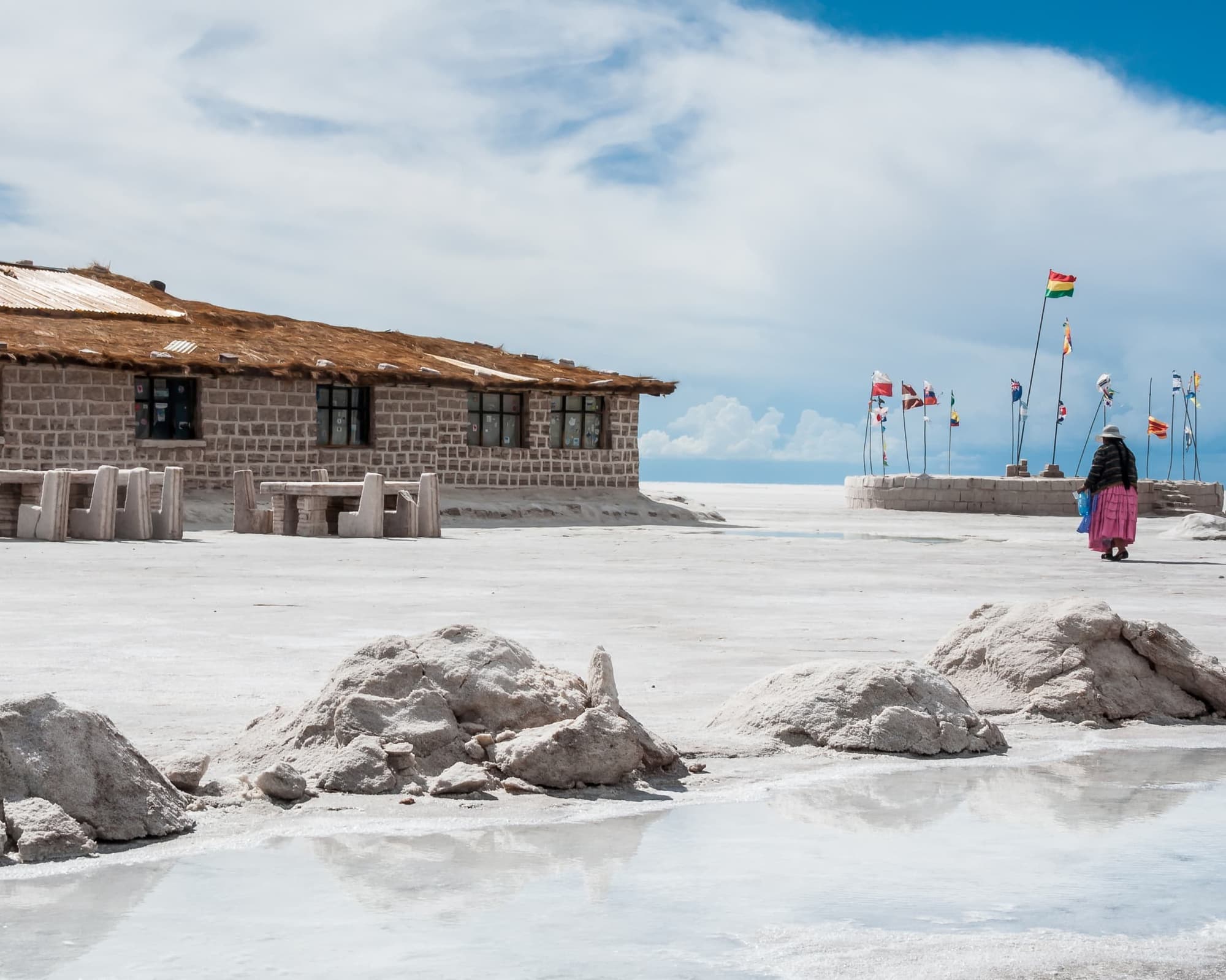 alpaca sombreros y ponchos. Luego ingresamos al salar para tener un recorrido visitando las escaleras del